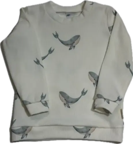 Dit rib shirt met blauwe walvissen is een fijne basic met een speelse twist. De zachte ribstof voelt heerlijk comfortabel aan en de walvisjes in frisse blauwtinten geven het shirt een vrolijke uitstraling.